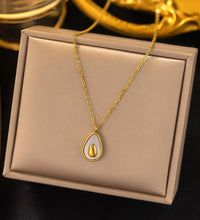 A minimalist stainless steel necklace featuring a delicate opal-style pendant with a gold-plated finish. Designed to be waterproof and durable, it offers an elegant everyday look that layers easily with other jewelry or stands out on its own.