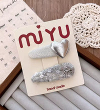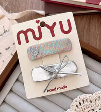 A sweet fabric hair clip designed with a silver bow accent for a clean, elegant look. Lightweight and gentle on fine hair, it securely holds baby bangs in place and is perfect for parties, outings, or everyday wear.