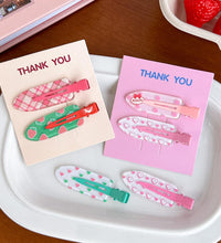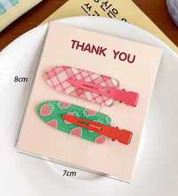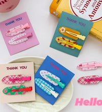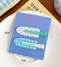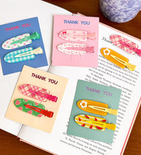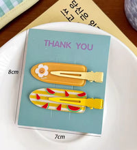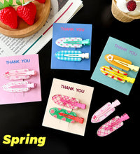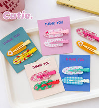 A cheerful hair clip set featuring colorful spring-inspired prints and patterns. Designed with a smooth finish and secure grip, these clips add a fun and playful touch to everyday hairstyles.
